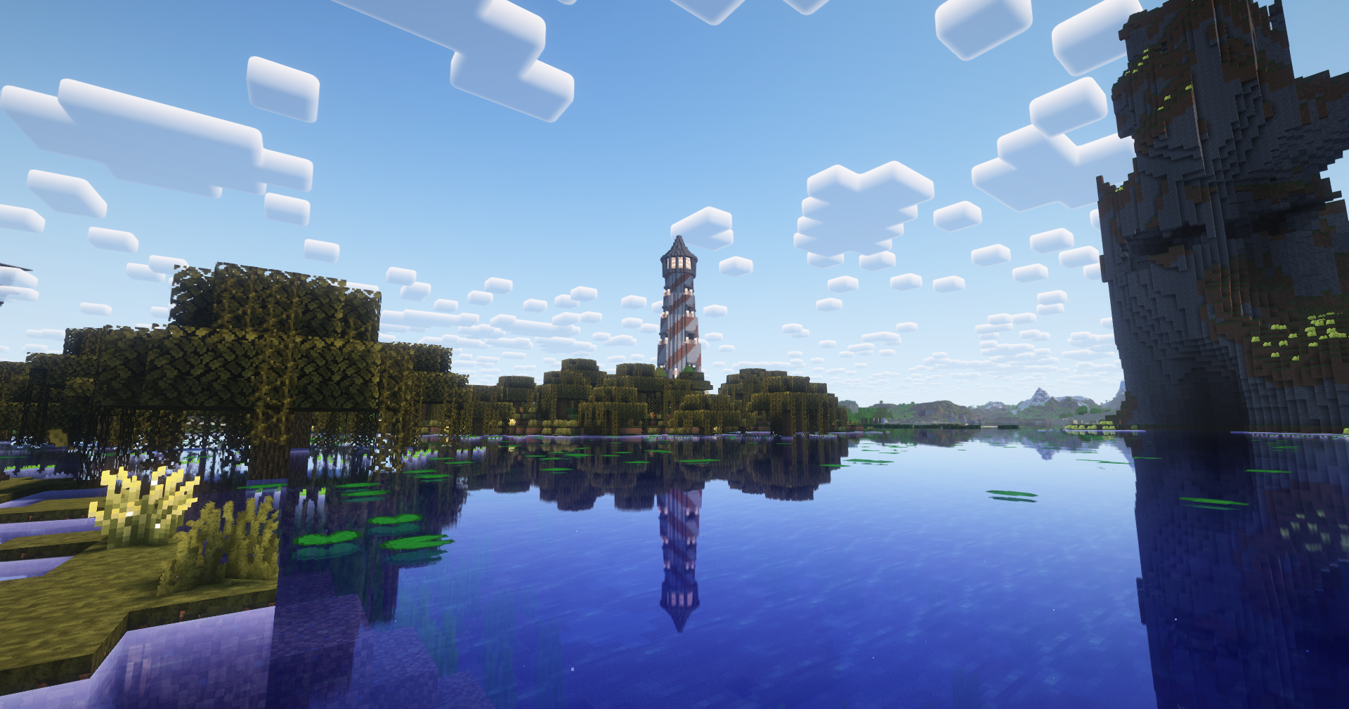 Lighthouse Exterior complete! and with a little trial and error, I was able to get it to glow properly with distant horizons as well! ¶